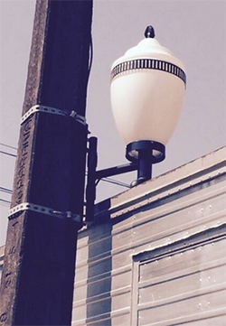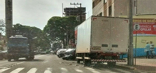 “Na esquina da av. Capitão Índio Bandeira com a rua Guarapuava, caminhão furgão estacionou embaixo da luminária e a arrastou para um lado. Estragado causado por falta de atenção”.