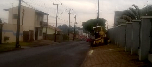 “Na av. Manoel Mogueira, entrada do Grande Lar Paraná, a motoniveladora foi deixada na calçada, numa boa”.