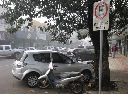 “Sexta-feira, rua São Paulo, perto do Sicoob. Se a placa diz “Exclusivo motos” é porque apenas motocicletas podem estacionar ali”.