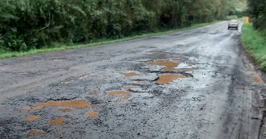 Olha o estado da PR-364, entre Campina da Lagoa e o distrito de Salles de Oliveira. O percurso tem 14 km e está dominado pelos buracos. “Não dá mais para suportar”, desabafou a professora Nilce Almeida, em postagem no Facebook. Segundo ela, o trecho demora uma hora para ser percorrido. Quem não conhece o problema acaba como carro quebrado. A rodovia é do governo do Estado.