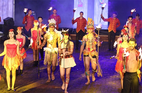 Há performances de teatro, hip hop, skate, pirofagia, percussão e números circenses.