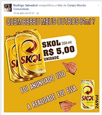 Foi para compartilhar um post que denunciava barracas que estariam vendendo cerveja mais cara que o anunciado.
