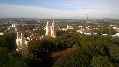 Vista da praça São José às 9h desta terça-feira. Ué, mas a previsão do tempo não era de que iria chover o dia inteiro? Aliás, a chuva não recomeçaria na segunda à noite? O Simepar continua informando que vai chover na terça inteirinha em Campo Mourão. Ai-aiai-aiai! Parece que a meteorologia só acertou a previsão nos dias da Festa do Carneiro no Buraco. No mais, pelo menos até agora, tá mais pra dança de quadrilha junina: "Olha a chuva! É mentira!"...