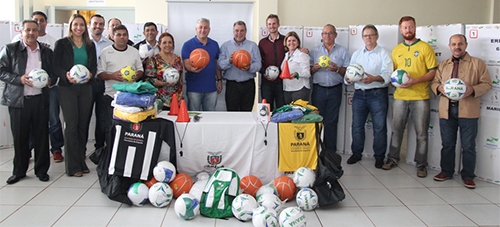Aconteceu sexta-feira, no escritório regional da Secretaria do Esporte e Turismo, a entrega de materiais esportivos para as 12 cidades sedes da fase regional dos Jogos Abertos do Paraná, categoria B. O secretário Douglas Fabrício e prefeito Baco Duarte (Ubiratã) participoaram. Entre os 12 municípios, dois são da região – Barbosa Ferraz e Ubiratã.