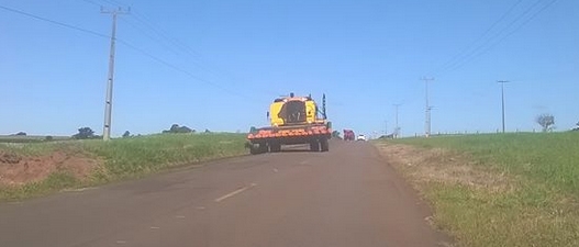 Colheitadeira trafega neste domingo pela PR-468 entre Janiópolis e Boa Esperança. O trecho entre as duas cidades tem menos de 15 km, mas está cheio de buracos. Moradores de Campo Mourão que foram à Festa do Vaca Atolada, em Boa Esperança, puderam conferir a situação da estrada estadual. E cá pra nós: quem dera fosse só essa...