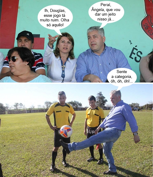 Os cliques são deste domingo, em Farol, onde secretário de Estado Douglas Fabrício (Esporte e Turismo) passou para entregar kits de materiais esportivos. Ele foi recebido pela prefeita Ângela Kraus e foi com ela assistir a jogo do Campeonato Extra-Amador no estádio municipal Silvestrão. Douglas, é claro, também mostrou suas habilidades com a pelota...
