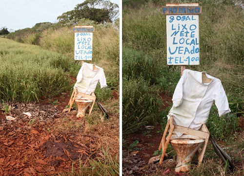 “Imagens feitas nesta sexta-feira em uma estrada vicinal nas proximidades da Santa Casa de Campo Mourão. E a língua portuguesa, coitada...” Dirceu