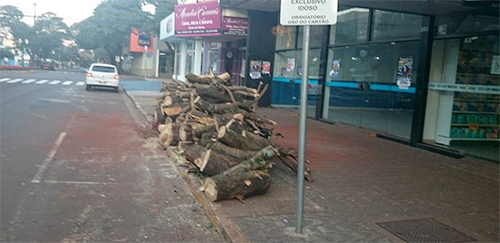 Olha a serra elétrica deixando seus rastros pela ruas de Campo Mourão. Essa aí ficava na av. Irmãos Pereira, bem no centro. A pergunta é a mesma de sempre: será que precisava?... (Foto: Vereador Edson Battilani)