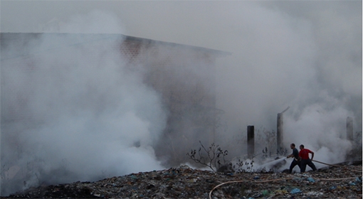 Depois de uma semana de muita fumaça, bombeiros comunitários de Ubiratã conseguiram acabar com os focos de incêndio a um depósito de materiais recicláveis abandonado em Campina da Lagoa, na saída para Nova Cantu. O problema só foi resolvido depois que uma retroescavadeira foi usada para jogar terra sobre o lixo que pegava fogo.