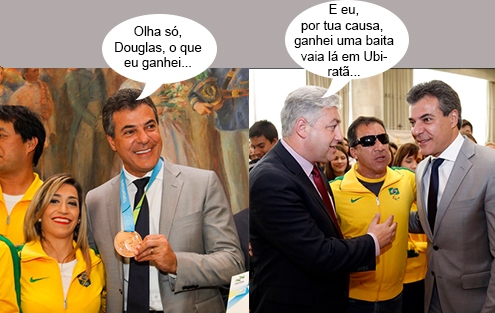 Teve cerimônia no Palácio Iguaçu, nesta segunda-feira, para homenagear os atletas do Paraná que disputaram os Jogos Pan-Americanos, em Toronto (Canadá). O governador Beto Richa e o secretário de Estado Douglas Fabrício (Esporte e Turismo) participaram. Sem vaias!...