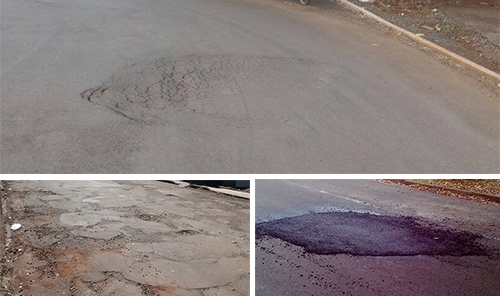 1) Rua paralela à Colacril, ao lado da av. John Kennedy, no Lar Paraná. Neste ponto tinha vários buracos. Foram tapados há três meses e já se formou outro no mesmo lugar.