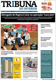 A Tribuna do Interior desta sexta-feira destaca, com manchete em fundo preto e tudo, que advogado da prefeita Regina Dubay virou alvo da operação Lava Jato. Isso porque escritório de Guilherme Gonçalves, de Curitiba, recebeu dinheiro de empresas investigadas.