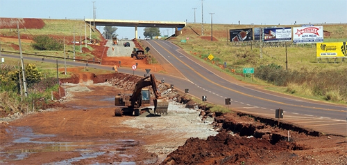 Os trabalhos de duplicação rodovia Campo Mourão-Maringá, que vêm de lá pra cá, já chegaram ao anel viário, o ponto final das obas. Dos 53 km entre Campo Mourão e Floresta, 14 km estão prontos e outros 11 km serão entregues até o fim do mês. Pelo contrato, a duplicação tem que estar pronta até o fim do ano que vem. Tudo feito com o dinheiro do pedágio. E o governo do Estado divulga como se a obra fosse dele...