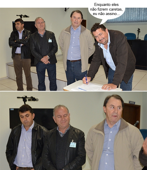 Os cliques são da entrega da ampliação da rede coletora de esgoto em Corumbataí do Sul. O investimento foi de R$ 761,4 mil, em 6.423 metros de rede e 214 ligações prediais. A cidade tem cerca de 78% de rede coletora. O prefeito Carlos Caxão assina observado pelo vereador Silvai Sanches, o gerente regional da Sanepar Edson Lima e o diretor da Sanepar, Ney Caldas.
