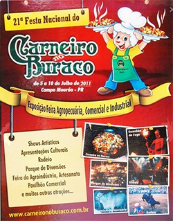 ...para o prato típico de Campo Mourão ser servido na 25ª Festa Nacional do Carneiro no Buraco. O cartaz de hoje é da 21ª edição do evento, realizada de 5 a 10 de julho de 2011. O cartaz destacava shows artísticos, mas não trazia o nome de nenhum artista.