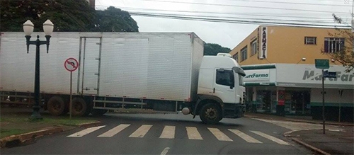 “Caminhão-baú trava a rua São Paulo, esquina com a av. Manoel Mendes de Camargo, tentando fazer o contorno. Foi nesta terça-feira à tarde”.