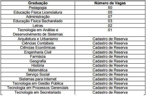 São 68 vagas para estudantes de seis cursos, além de cadastro de reserva para outras 13 graduações.