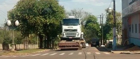 Na falta de um, tem dois caminhões (um em cima do outro) passando pela av. Capitão Índio Bandeira, a principal de Campo Mourão.