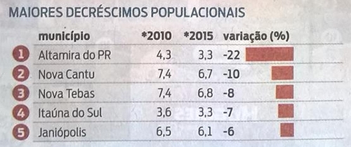Altamira do Paraná lidera esse ranking, com queda populacional de 22%.