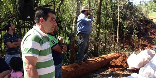 A prefeitura de Nova Cantu inaugurou domingo a nova ponte sobre rio santo Rei. A obra foi feita com recursos próprios do município. Os agricultores da região gostaram tanto que patrocinaram um almoção pra comemorar, com churrasco e tudo. Tudo feito ali, ao lado da ponte. O prefeito Airton Agnolin, é claro, não deixou de discursar. Para isso, usou o tronco caído de uma árvore como palanque.