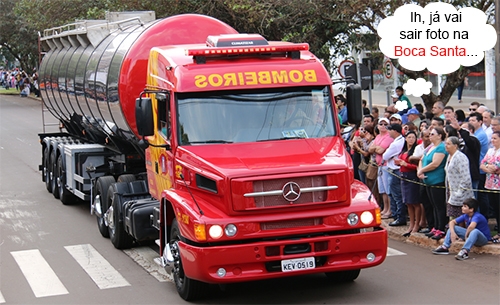 O clic é desta segunda-feira, durante o desfile do Dia da Independência em Campo Mourão. Como é tradição, o Corpo de Bombeiros participou com toda sua frota. A novidade foi a carreta de combate a incêndio, que chegou há pouco tempo. Portanto, o que tá fazendo aí? Tá desfilando. E desfilando pooooooode...
