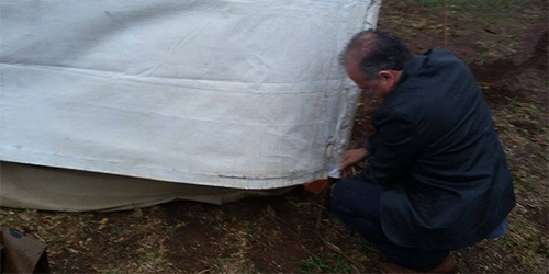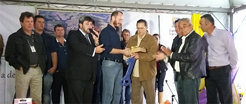 Olha o gerente regional da Sanepar, Edson Lima, arrumando a lona do palanque durante a solenidade de inauguração de casas populares, em Nova Cantu. Foi nesta quinta-feira. Lima deixou o palanque pra tomar as providências quando começou a ventar. Explicou que já participou de evento em que o palanque caiu por causa da ventania e ele acabou de machucando. Aí já viu, né, gato escaldado tem medo de água fria...