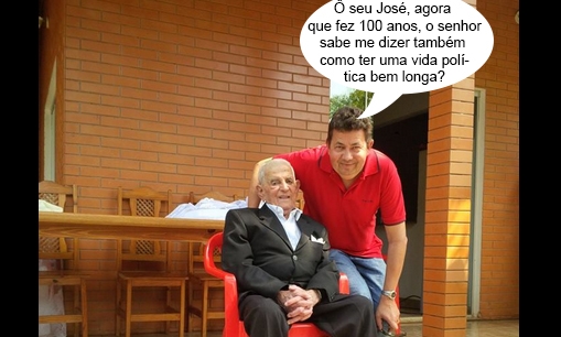 Lembra do seu José Caetano, que completou 100 anos na segunda-feira (7 de setembro)? Ele é avô da primeira-dama de Corumbataí do Sul, Rita de Cássia. Por isso mesmo, o prefeito Carlos Caxão participou das comemorações do centenário, com direito a pose pra foto e tudo. Ah, vai que essa longevidade pega, né?...
