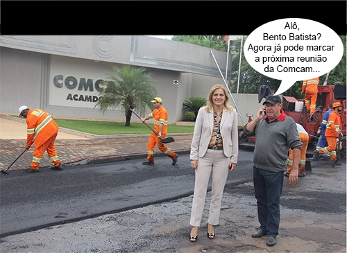 O clic é desta sexta-feira pela manhã, quando o recape asfáltico chegou à rua Brasil, entre as avenidas José Custódio de Oliveira e João Bento. A prefeita Regina Dubay foi lá conferir, com direito a pose bem em frente à sede da Comcam. É ali que os prefeitos da região costumam se reunir. E da próxima vez, sem buracos!...