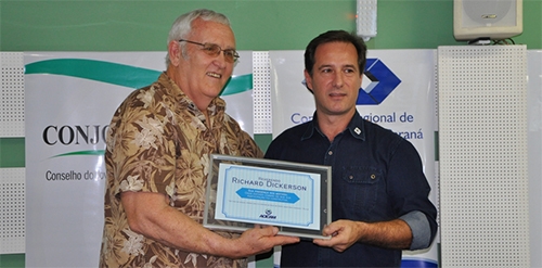 O reverendo Richard Dickerson se despediu da Acicam durante a reunião mensal desta quarta-feira. Depois de 40 anos no Brasil, ele retorna para os Estados Unidos no mês que vem. Recebeu placa de homenagem do vice-presidente Paulo César Gomes e tudo.