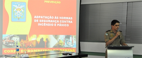 O comandante do Corpo de Bombeiros de Campo Mourão, capitão Leandro Calegari, esteve na Acicam nesta quarta-feira.