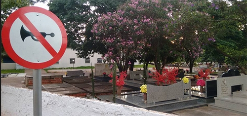 Responda rápido: Por que não se pode buzinar em frente ao Cemitério Municipal de Campo Mourão? A placa está lá, na av. Ney Braga, perto da 11ª Ciretran. É provpavel que seja pela capela mortuária, que fica um pouco mais à frente. Ou, quem sabe, seja só pra garantir o “descanso eterno”. Por via das dúvidas, né?...