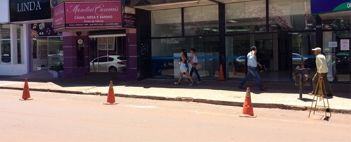 Cena que se tornou comum no centro de Campo Mourão: cones reservam vaga em estacionamento que é público...