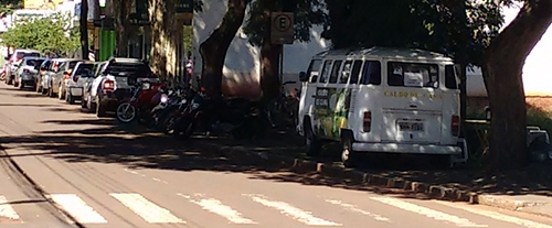 Nesta quinta-feira pela manhã, Kombi de caldo de cana estaciona sobre a calçada em plena av. Manoel Mendes de Camargo, esquina com rua Mato Grosso.