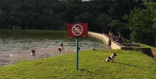 Placa alertando que é proibido nadar no local não falta, mas tem gente insistindo em dar um mergulho no Lago Municipal de Ubiratã. O flagra foi feito pelo site Sistema Vale e a cena, segundo consta, tem sido comum. Aliás, no clic parece que só o cachorro entendeu o aviso. Entendeu e, envergonhado, nem quis ficar olhando...