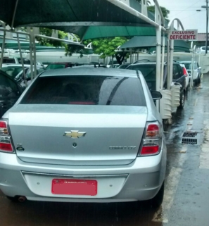 “Carro com placa vermelha de Barbosa Ferraz usa vaga exclusiva para deficiente físico no estacionamento do Muffato de Campo Mourão. Pelas novas regras em vigor, a polícia pode multar veículos nessas condições em estacionamento de mercados, shoppings e condomínios”.