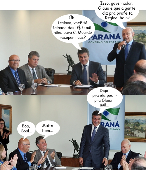 Repare a dupla em pé está de prontidão, como se alguma coisa pudesse a acontecer a qualquer momento. Isso dentro do gabinete da prefeita Regina Dubay (ela não estava presente). Ai-aiai-aiai! Imagine quando essa tocha chegar, como é que será...