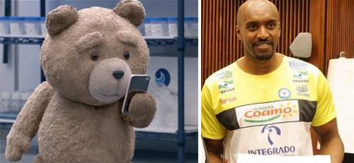 Não. Não é o ursinho esperto que faz sucesso no cinema, com direito a segundo filme e tudo. O Ted que está chegando a Campo Mourão (ou melhor, voltando) é este da direita, que joga basquete. Ele já atuou por aqui e teve passagens com destaque por Pinheiros e Mogi das Cruzes. “É um jogador que a torcida conhece e confia”, postou a Amobasquete no Facebook.