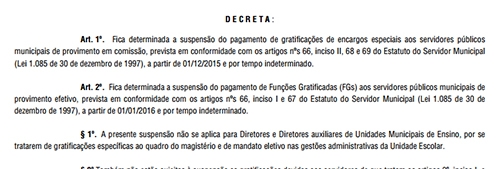 A prefeitura suspendeu por tempo indeterminado o pagamento de graficações a todos os cargos em comissão.