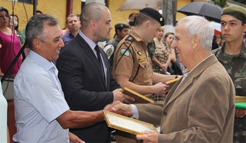 O Tiro de Guerra de Campo Mourão aproveitou a solenidade de formatura da turma 2015, nesta sexta-feira, para entregar quatro diplomas de “Amigos do Tiro de Guerra”. Olha aí o “padrinho” do TG, professor Joani Teixeira, entregando um deles, para o Sebastião Ribeiro, da Secretaria de Agricultura e Meio Ambiente. Os ouros três foram para Márcio Berbet (Procurador Geral da prefeitura), Cássia Araújo (Procuradoria) e Vera Scatu (Provopar).