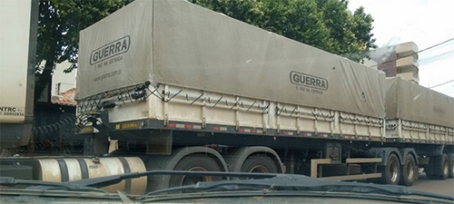 “A carreta bitrem era tão grande que nem coube na foto, mas a cena foi vista nesta quara-feira, por volta do meio-dia, na rua Mato Grosso, esquina com av. Irmãos Pereira”.