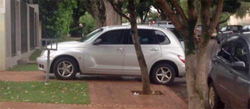 “Na rua Londrina, em frente ao escritório do secretário Douglas Fabricio, tem mais motorista cometendo irregularidade, como deixar o carro sobre a calçada”.