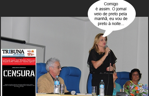 No dia em que a Tribuna do Interior saiu com capa preta, acusando a prefeitura de tentativa de censura, a prefeita Regina Dubay foi ao lançamento de livros da 2ª Bienal do Livro usando roupas pretas. O jornal diz que prefeitura tentou fechá-la como retaliação a reportagens publicadas nos últimos dias. Em nota, a administração negou a censura e disse que a notificação foi a uma gráfica e não ao jornal.