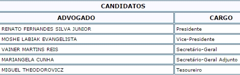 O bate-chapa fica por conta a seção estadual da Ordem, que tem dois candidatos.