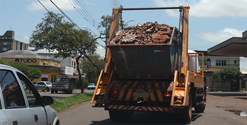 “Perigo à vista. Às 13h desta segunda-feira, na av. Goioerê, caminhão trafegando sem o mínimo cuidado para evitar que o entulho caia da caçamba”.
