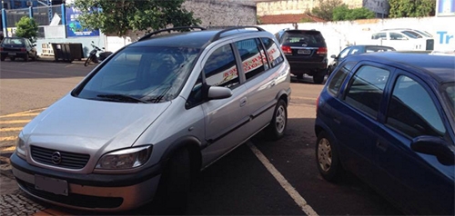 “Flagra feito na manhã desta segunda-feira na rua São José, entre as avenidas Manoel Mendes de Camargo de Capitão Índio Bandeira. Parece que não é bem assim que se deve estacionar no local”.