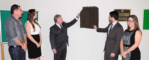 Mamborê – O Fórum Eleitoral agora se chama Desembargador Antonio Oesir Gonçalves. O descerramento da placa foi feito pelo presidente do TRE, desembargador Jucimar Novochadlo. Os prefeitos Nei Calori (Mamborê) e Cláudio Gotardo (Boa Esperança) participaram.