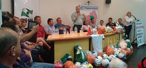 Doze prefeitos da região foram à Comcam nesta quinta-feira para receber kits esportivos da Secretaria de Estado do Esporte.