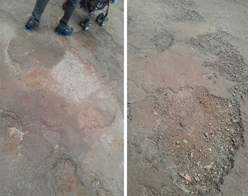 “Olha a situação da rua das Grevilhas, no jardim Ipê (Lar Paraná). Será que a gente consegue uma obra por aqui, com urgência? A outra foto é da travessa Limoeiros, também no jardim Ipê”.
