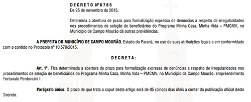 A representação era dos vereadores Elias Veloso Braga e Moacir Pereira dos Reis.