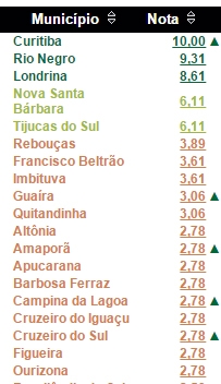 Mamborê, Moreira Sales, Quarto Centenário e Rancho Alegre do Oeste ficaram com nota zero (o máixmo é 10).